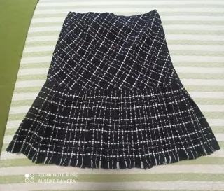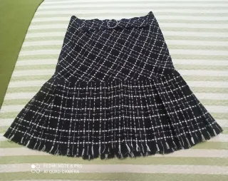 Preciosa falda plisada, nueva con etiqueta. Es de color blanco con detalles en negro. La vendo por lo q me costo, ya ves el precio. Leva cremallera lateral y boton.