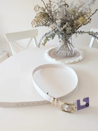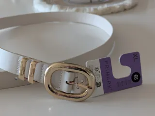 Cinturón de color blanco con hebilla dorada. Talla XL de Primark. Largo total del cinturón 131 cm aproximadamente. Completamente nuevo, fue un regalo pero no lo uso. Pantalón, vestido, falda, lazo, zara, lote