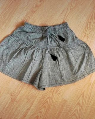 Preciosos shorts de Zara, talla M. Son de color blanco y negro a cuadros. - Tienen una bonita caída. - La cintura es elástica con cordón. - Incluyen borlas decorativas.