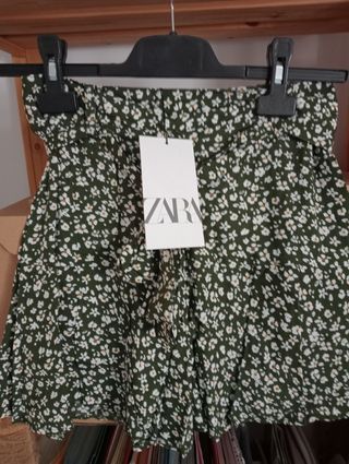 Preciosos shorts de Zara en color verde oliva, con estampado de florecitas blancas. Son de la talla XS. - Están en perfecto estado. - Se atan a la cintura con una cinta. - Ideales para primavera/verano.