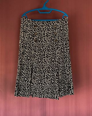 Falda midi floral negra con botones