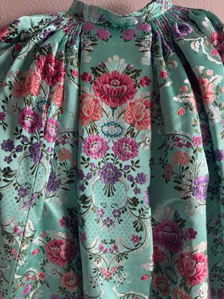 Traje de novia alicantina con un diseño único. - Cuerpo negro con detalles blancos. - Falda con estampado floral en tonos azules y verdes. - Incluye un fajín negro.incluye dos faldas.dama o belleza infantil