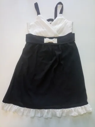 Vestido gasa negro y blanco con lazo