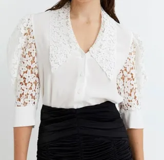 Camisa blanca encaje cuello bobo Talla S