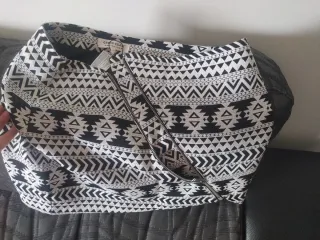 Conjunto de falda y bolso estilo romería. - Falda blanca con detalles. - Bolso negro con adornos.