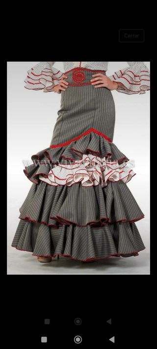 traje comprado en el rocio, la talla indica 34 falda y 44 chaquetilla peronla persona que lo lleva utiliza una 38-40