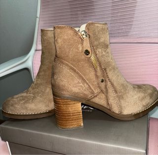 Botines marrones claritos Talla 39. Muy bonitos para llevar con vaqueros o faldas. Me los he puesto 2 veces… me los compré en Enero de 2024, y al final me acabo poniendo los negros siempre. Los vendo por no usarse, están como nuevos. Una particularidad que tienen es que en la punta del zapato, son un pelín más oscuros, pero son así de fábrica. No es que estén desgastados, son así. Son de la Zapatería Luna de Alcantarilla. Me costarón 44,95€. Adjunto Foto.