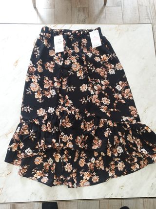Falda Stradivarius talla L. Tonos tierra predominante marrón. Ideal con camperas.