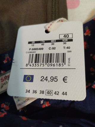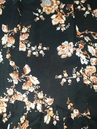 Talla única pero la recomiendo desde una 42 a 46, es grande....más larga por detrás que por delante combinando el animal print con motivos florales en la parte del volante .Tela fina y con mucha caída.....espectacular de bonita, super llamativa, con esparteñas, con botas camperas, con botas boho.....te vale para todo!