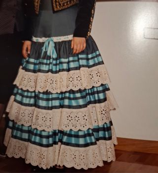 falda campera ideal para romerías, muy fresquita y no pesa casi nada, fácil de combinar con varios colores. talla unos 10 años cintura: 61cm cadera: 84cm largo: 85cm (tiene 4cm por cada lado para poder sacar) * no incluye complementos ni corpiño* +++MAS EN MI PERFIL+++