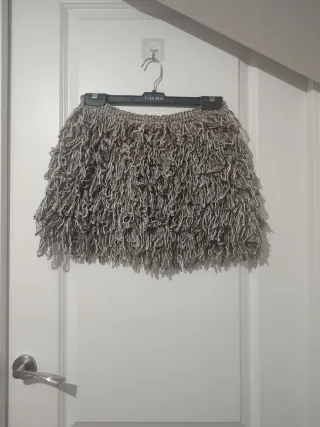 Falda con un diseño original y llamativo, perfecta para añadir un toque único a tu estilo. Queda divina con camperas. - Estilo con flecos. - Tejido texturizado.
