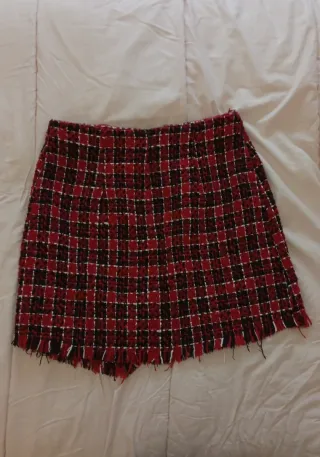 Falda corta con estampado de cuadros estilo tweed. Muy elegante y fácil de combinar, ideal para otoño/invierno. En muy buen estado, sin estrenar Queda preciosa con botas o tacones. Talla XS - Diseño de cuadros. - Tejido tipo tweed.