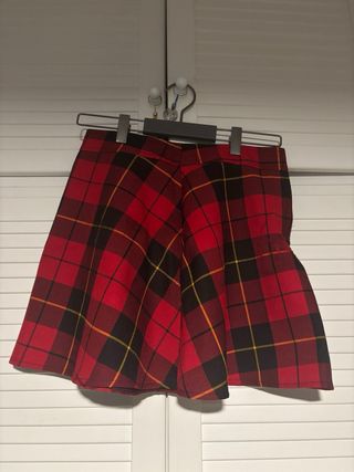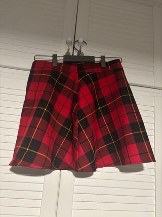 Falda de cuadros con un diseño llamativo. Tiene alguna imperfección, se puede ver en la ultima foto - Patrón de cuadros escoceses. - Combinación de rojo y negro.