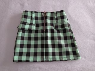 Nueva, nunca usada, Preciosa minifalda de cuadros vichy en tonos verdes y negros. Es una prenda elegante y juvenil, ideal para cualquier ocasión. - Diseño de cuadros vichy - Cierre de cremallera - Talla 36 Medidas y características en las fotos.