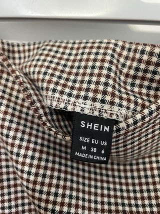 Falda corta con estampado de cuadros y acabado deshilachado. -cintura mide 38,largo 38,salvo el pico que hace delante ,por si de es más larga. - Diseño con solapa cruzada. - Detalle de botón. - Tejido tipo tweed.