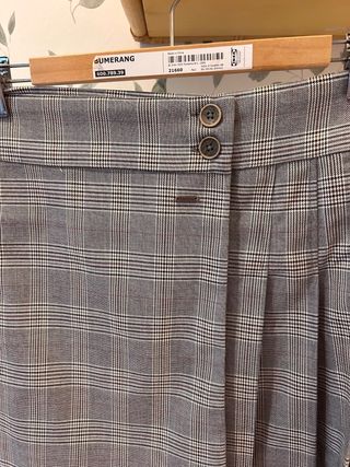 • Talla: se ajusta a una 36 (queda apretada/justa) • Ajuste: a la cintura, por el ombligo • Composición: 64% poliéster, 34% viscosa, 2% elastano • Estado: usada muy pocas veces, prácticamente nueva • Detalle: cremallera lateral Clásico estampado de cuadros en tonos neutros, ideal para combinar en looks casuales o más arreglados.