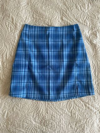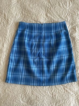 Preciosa minifalda escocesa en azul. Ideal para cualquier ocasión. - Diseño de cuadros. - Corte entallado. - Cierre de cremallera invisible.