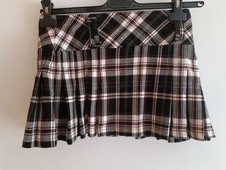 Minifalda plisada talla XS de Stradivarius, cuadros blanco y negro. No tiene etiqueta pero está sin estrenar