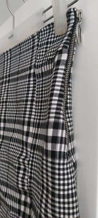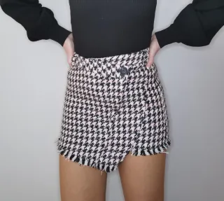 Preciosa falda pantalón de cuadros en blanco y negro. Es una prenda elegante y versátil, ideal para cualquier ocasión. - Diseño de falda pantalón (skort). - Cierre con botón y lazo. - Tejido ligero y agradable al tacto.