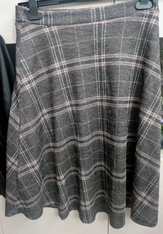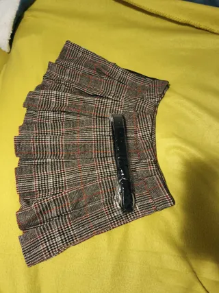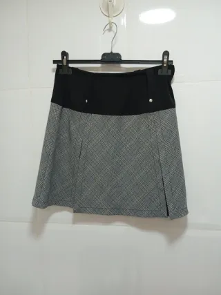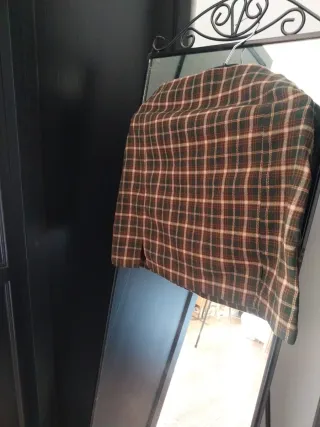 Falda corta con un diseño de cuadros clásico y elegante. pone talla XL, pero vale más para una M, L