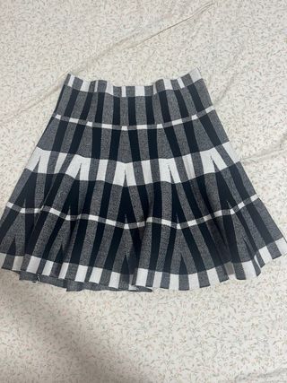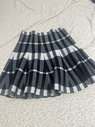 Falda corta de Stradivarius con un diseño de cuadros clásico. Muy nueva, poco uso. - Estampado de cuadros en blanco y negro. - Cremallera frontal. - Detalle de anilla metálica en la cintura.
