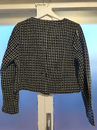 Americana con estampado de cuadros. - Diseño de doble botonadura. - Bolsillos frontales. - Cuello solapa. Es del H&M, pongo Zara para mayor visibilidad. Vengo también la falda a conjunto, si quieres las dos cosas, hago precio.