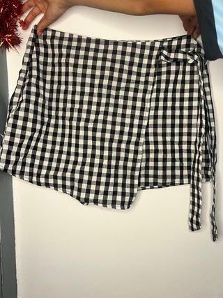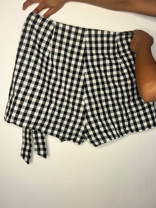 Falda corta de Zara con estampado de cuadros. - Diseño de cuadros en tonos grises y blancos. - Cintura con pliegues.