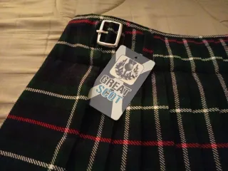 Falda estilo kilt con diseño escocés de la marca Great Scot. Presenta un patrón de cuadros clásico. Nueva. Comprada en Escòcia. - Diseño a cuadros en negro, blanco y rojo. - Cierre con hebillas en la cintura.