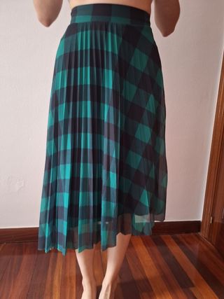 Falda de cuadros de la marca Pull&Bear. - Diseño de cuadros. - Cintura con botones.