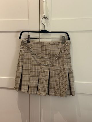 Falda de cuadros con detalle de cadena. - Diseño plisado. - Cadena metálica decorativa.
