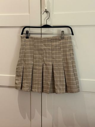 Falda corta de Bershka con estampado de cuadros. - Diseño plisado. - Cierre cremallera lateral.