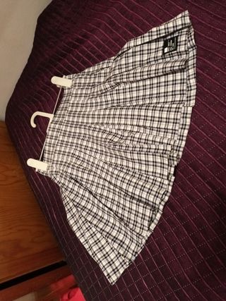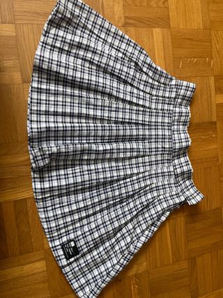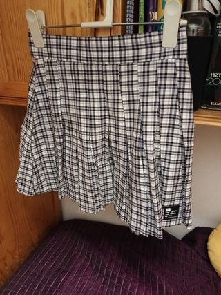 Falda plisada de cuadros negro,gris y un tono muy suave morado. Muy poco uso,puesta un par de veces. Talla S No hago envios