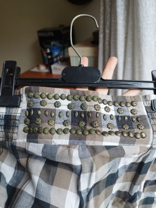 Vaquera con petachos a cuadros. cintura regulable con goma. En buen estado