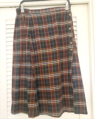 Falda de cuadros escoceses. La cintura es elástica y raja al lado con adornos de botones. Usada una vez y está impecable. Es muy cómoda y elegante.