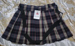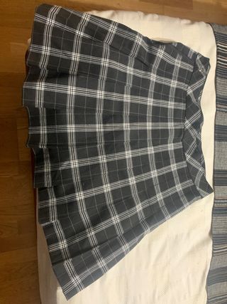 Falda de estilo escocés con un diseño de cuadros clásico. - Diseño de cuadros. - Cintura marcada, cremallera que cierra pero al final le cuesta un poco - Pliegues.