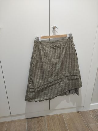 Preciosa falda de la marca Laga, talla XS. Es una falda de vuelo con un diseño elegante y sofisticado. - Diseño cruzado. - Doble forro. - Estampado cuadros y rayas. - Bolsillos laterales.