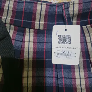 Falda de cuadros con etiqueta. - Diseño de cuadros en tonos azules, rojos y beige. - Talla M (equivalente a 38/10). - Cierre de cremallera y botón.