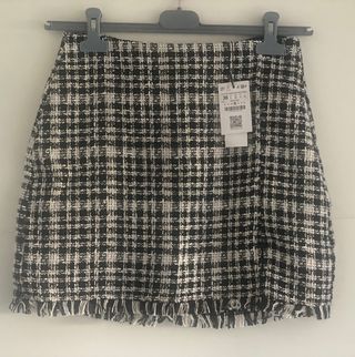Falda de invierno a cuadros blancos y negros con pequeña abertura en un lateral. Talla 38. Nuevo a estrenar con etiqueta. Se hacen envíos. Entregas en Mostoles y alrededores. Más productos en mi perfil🛍️.
