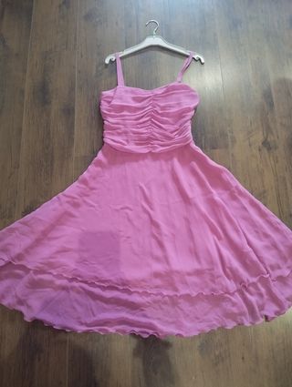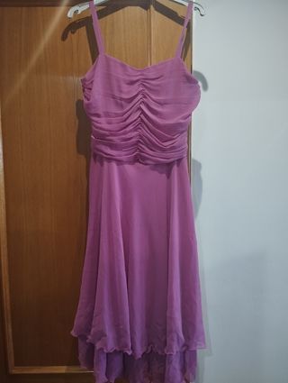 Precioso vestido de color lila, ideal para una ocasión especial. Es de un tejido ligero y fluido, con un diseño favorecedor. TALLA 42 pero creo que va más para una 40. - Escote cuadrado. - Tirantes finos. - Falda vuelo.