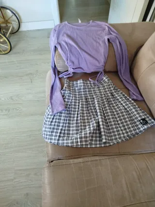 Conjunto top lila y falda cuadros XS