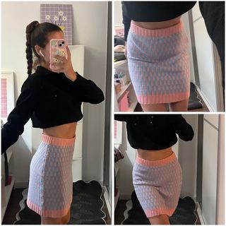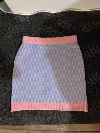 Falda de punto de cuadros rosa y azul. Cintura elástica. Muy cute coquette.