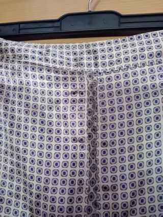 Preciosa falda pantalón de vichy en tonos azul y blanco. 48% viscosa. - Diseño de cuadros pequeños. - Cierre de cremallera por detrás y botones nacarados por delante. -Medidas: La talla de la etiqueta no corresponde. Marca talla 46 pero en realidad es L - Cintura 41 cm - Largo 40 cm - Ancho pierna pantalón 36 cm. - Nuevo, sin etiqueta.