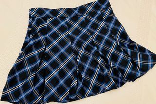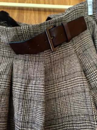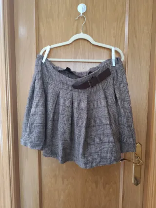 Falda corta con estampado de cuadros. - Diseño con pliegues. - Cintura con trabillas. Sólo puesta una vez