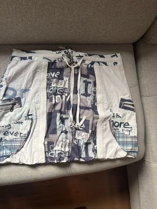 Minifalda Desigual con un diseño vibrante y moderno. Perfecta para añadir un toque de estilo a tu armario. - Estampado gráfico llamativo. - Cintura con cordón ajustable. - Bolsillos laterales con cremallera. - Detalles de cuadros en los bajos.