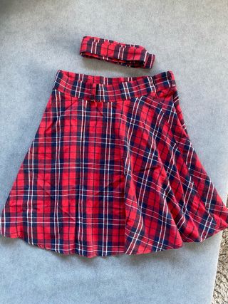 Falda de cuadros con un diseño moderno y llamativo. - Estampado de cuadros escoceses. - Detalle de hebillas en la cintura. - Corte plisado. - Cremallera en el costado. - Sin usar. - Totalmente nueva. -5€ cada una por separado.