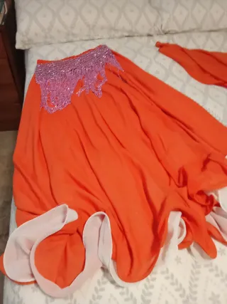 Traje Danza Vientre Top Rosa y Falda Naranja