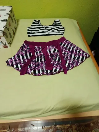 Buen estado. Hecho y diseñado a mano. Falda, top y volantes para brazos. Ubicación: ALHAURÍN EL GRANDE (MÁLAGA). Segundo piso.