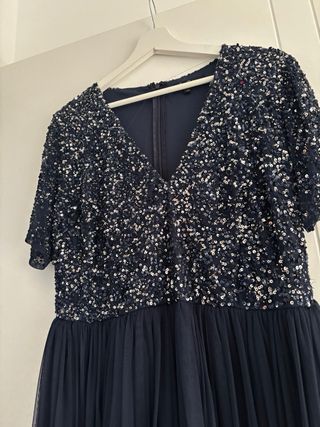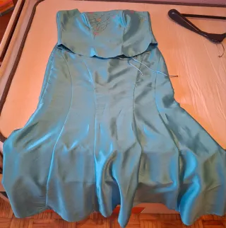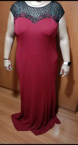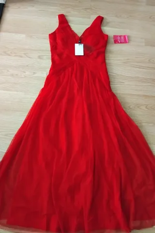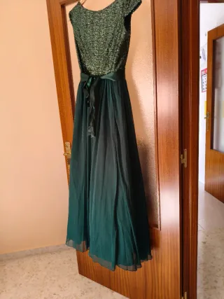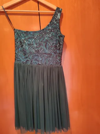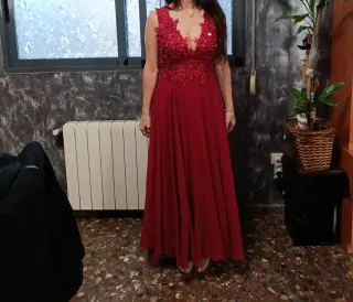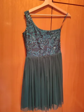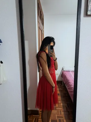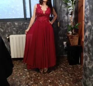 He usado el vestido una vez. Suelo usarlos para una sola ocasion en mi pagina hay mas y la mayoria estan nuevos y hasta con etiqueta alguno. Elegante vestido de fiesta con un diseño moderno y favorecedor. Ideal para ocasiones especiales. - Escote pronunciado. - Falda con vuelo. - Detalle de encaje en el corpiño.