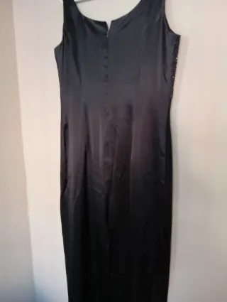 Elegante vestido largo para eventos especiales. - Diseño con escote asimétrico. - Manga larga con detalles brillantes. - Falda con abertura lateral. - Tejido con acabado satinado. - Me costo 240€, puesto solo una vez.