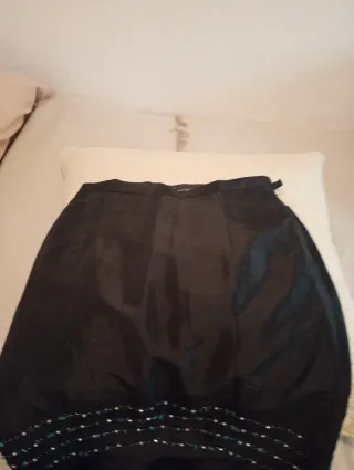 Elegante falda de fiesta con un diseño único. - Detalle de abalorios en la parte inferior. - Tejido con brillo sutil.